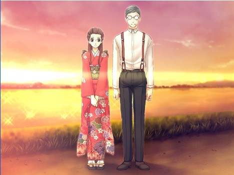 【白】這個結局蠻慘的……秀雄戰死在西伯利亞,隨身遺物中的照片透過鏡子被送回女主角的手中。然後傷心欲絕的女主就跑到他們兩個照相的河岸,活活凍死在雪地中……